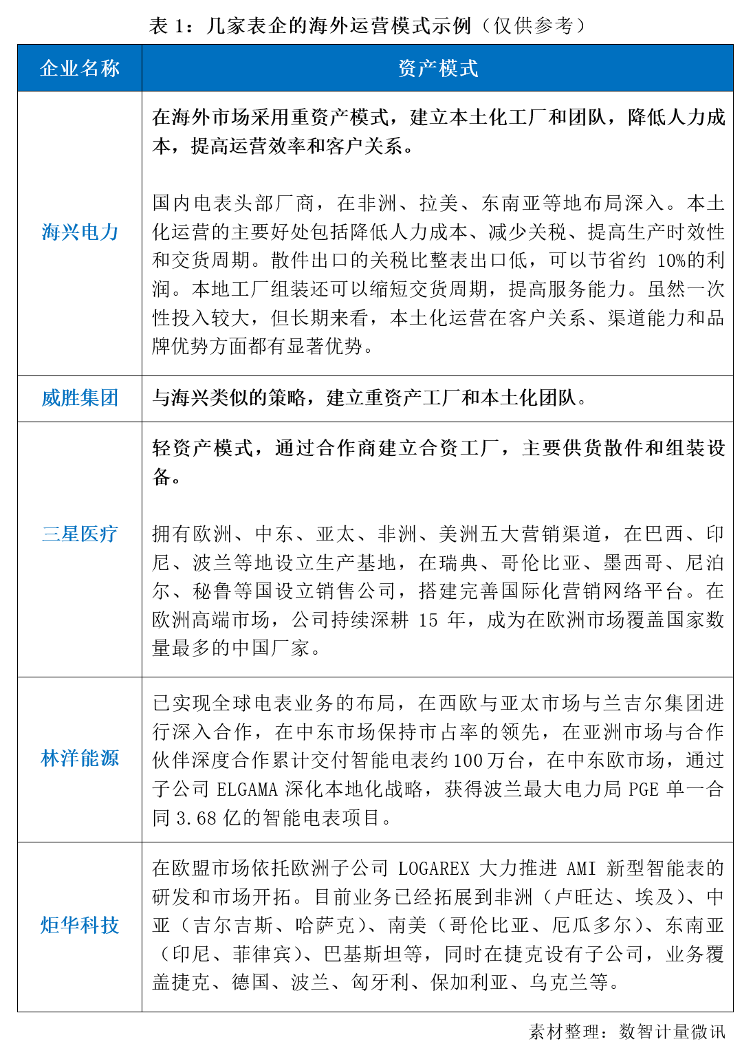 在海外市場頗有建樹的幾家龍頭表企,有的采用重資產模式,建立本土化工廠和團隊;有的采用輕資產模式,與合作伙伴合資;有的收購并購,建有辦事處或子公司。走得最遠的在出海3.0階段。