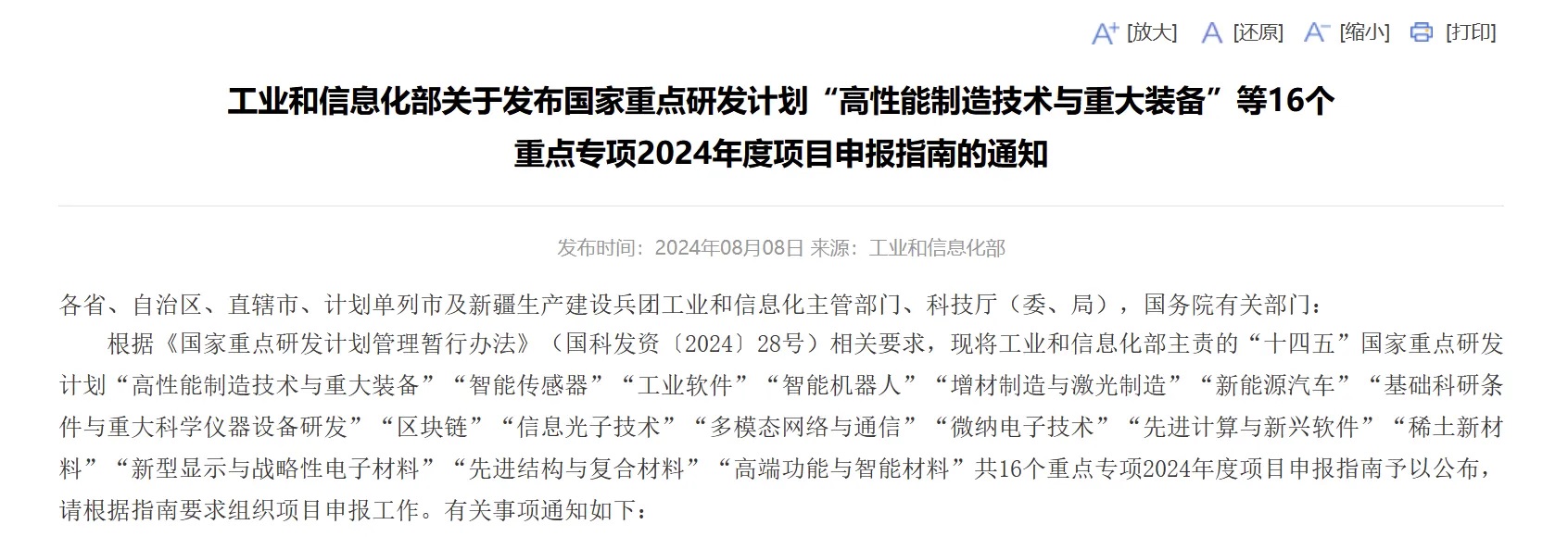 近期,工信部國(guó)家重點(diǎn)研發(fā)計(jì)劃2024年度項(xiàng)目申報(bào)指南發(fā)布,共涵蓋“高端功能與智能材料、先進(jìn)結(jié)構(gòu)與復(fù)合材料、新型顯示與戰(zhàn)略性電子材料、高性能制造技術(shù)與重大裝備、微納電子技術(shù)、新能源汽車”等在內(nèi)16個(gè)重點(diǎn)專項(xiàng)。