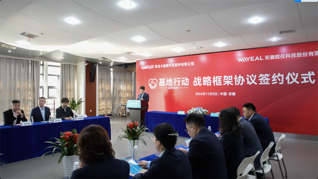 11月5日上午,安徽皖儀科技股份有限公司(以下簡稱“皖儀科技”)與青島卡福萊汽車配件有限公司(以下簡稱“青島卡福萊”)在皖儀科技總部正式簽署基地行動戰(zhàn)略框架協(xié)議。雙方圍繞汽車配件行業(yè)所面臨的新領(lǐng)域、新機遇展開深入交流,共同探索汽車配件行業(yè)發(fā)展新篇章。