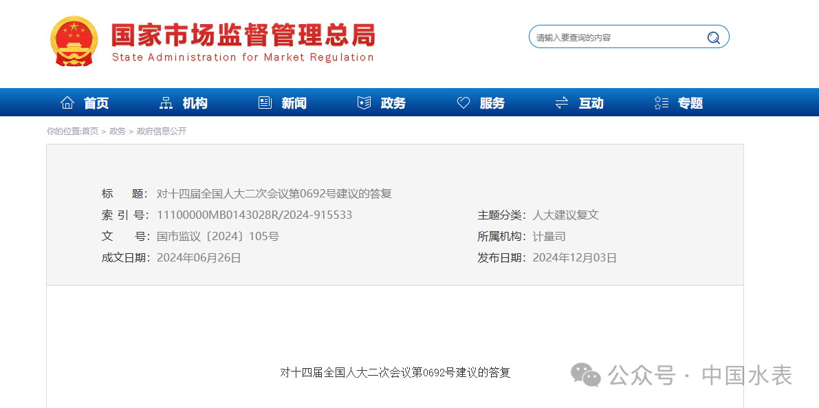 近日,人大代表李豐提出的《關(guān)于優(yōu)化智能水表檢測流程,資源節(jié)約集約利用的建議》獲市場監(jiān)管總局回復。市場監(jiān)管總局回復將積極研究探索跨區(qū)域一體化計量器具強制檢定制度改革,推動區(qū)域間強制檢定結(jié)果互認,為“二檢合一”在更大范圍推廣奠定制度基礎(chǔ)。