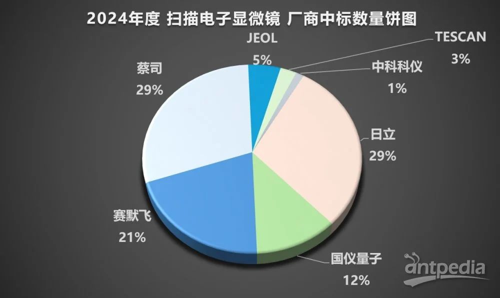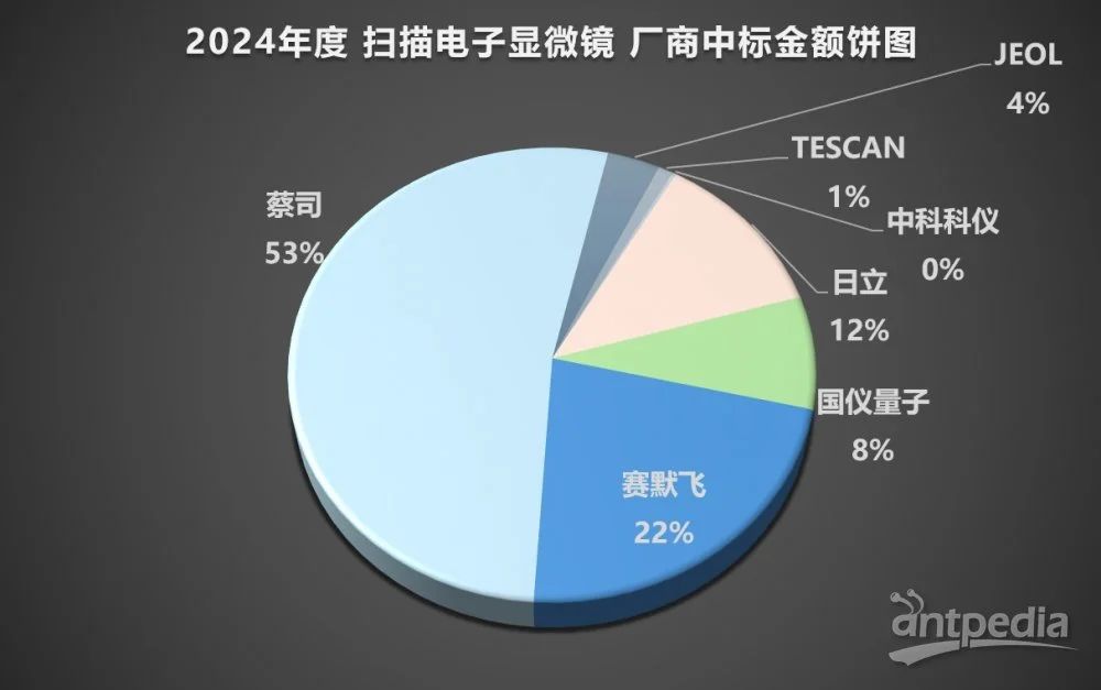 2024年度掃描電子顯微鏡主要品牌包括蔡司、賽默飛、國儀量子、日立、JEOL等??偨痤~為3.45億元,占總金額的96%。
