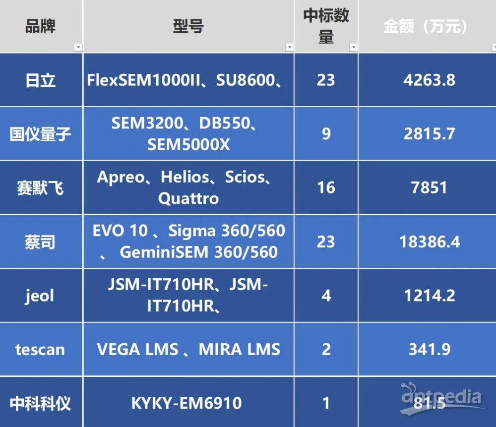 JEOL:中標4臺,金額1214.2萬元,占總數量的4.55%,占總金額約4%。
