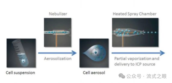 樣品引入:細胞在被引入質(zhì)譜儀時被霧化成微小的 droplets(液滴),這個過程將含有金屬標簽抗體或其他細胞探針標記的單細胞懸液引入等離子體炬中(圖2-1)。