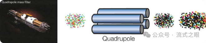 產(chǎn)生的離子云通過真空錐接口進入四極離子偏轉器,采用四極桿按照離子的質(zhì)荷比(m/z)對離子進行過濾并富集,去除常見的生物元素離子,只富集含有目標金屬報告離子(根據(jù)質(zhì)荷比大小)的部分(圖2-4)。這樣可以提高后續(xù)質(zhì)譜分析的準確性和特異性,只檢測與抗體結合的重金屬標記的蛋白質(zhì)離子。