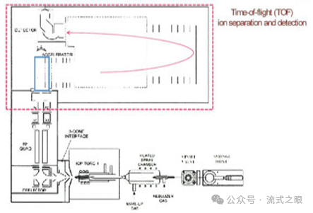 a.這些液滴隨后進入電感耦合氬等離子體(ICP)中,在高溫和高頻電場的作用下,細胞內(nèi)的共價鍵被斷裂,原子和離子被釋放出來。這個過程是使用電感耦合等離子體質(zhì)譜(ICP-MS)(圖2-2)進行,ICP-MS 是一種用于分析元素組成和含量的儀器技術。在質(zhì)譜流式中,ICP-MS 用于將與金屬標簽結合的細胞探針中的金屬元素離子化,并根據(jù)離子的質(zhì)荷比(m/z)對其進行分離,為后續(xù)TOF-MS提供了元素特異性的檢測信號。