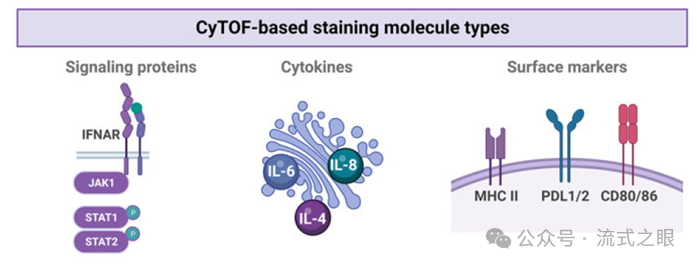 Step2.抗體孵育與細胞處理(圖2-6):將單細胞懸液與帶有金屬標簽的抗體進行孵育。抗體與細胞內(nèi)的目標蛋白質(zhì)結合,形成抗體 - 蛋白質(zhì)復合物,以便后續(xù)的檢測。如果要檢測胞內(nèi)的靶標,則需要進行細胞破膜(permeabilization)處理。通常使用化學物質(zhì)或物理方法破壞細胞膜,使抗體能夠進入細胞內(nèi),與細胞內(nèi)的蛋白質(zhì)結合,除了使用的是帶有金屬元素標簽的抗體,過程與傳統(tǒng)熒光流式的檢測流程也無差別。