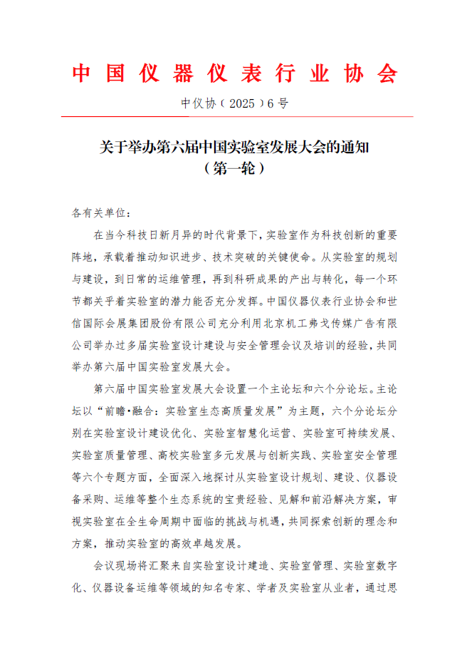 關(guān)于舉辦第六屆中國(guó)實(shí)驗(yàn)室發(fā)展大會(huì)的通知(第一輪)