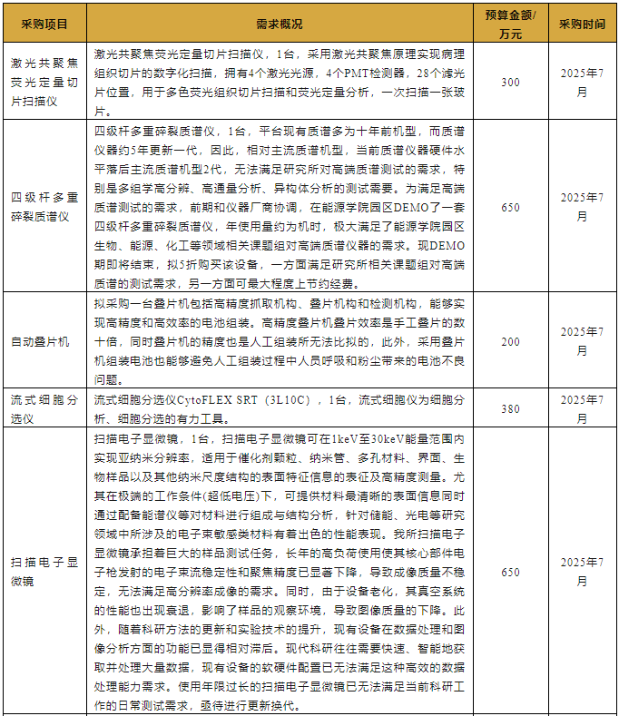 中國科學院大連化學物理研究所2025年7月儀器設備采購意向匯總表