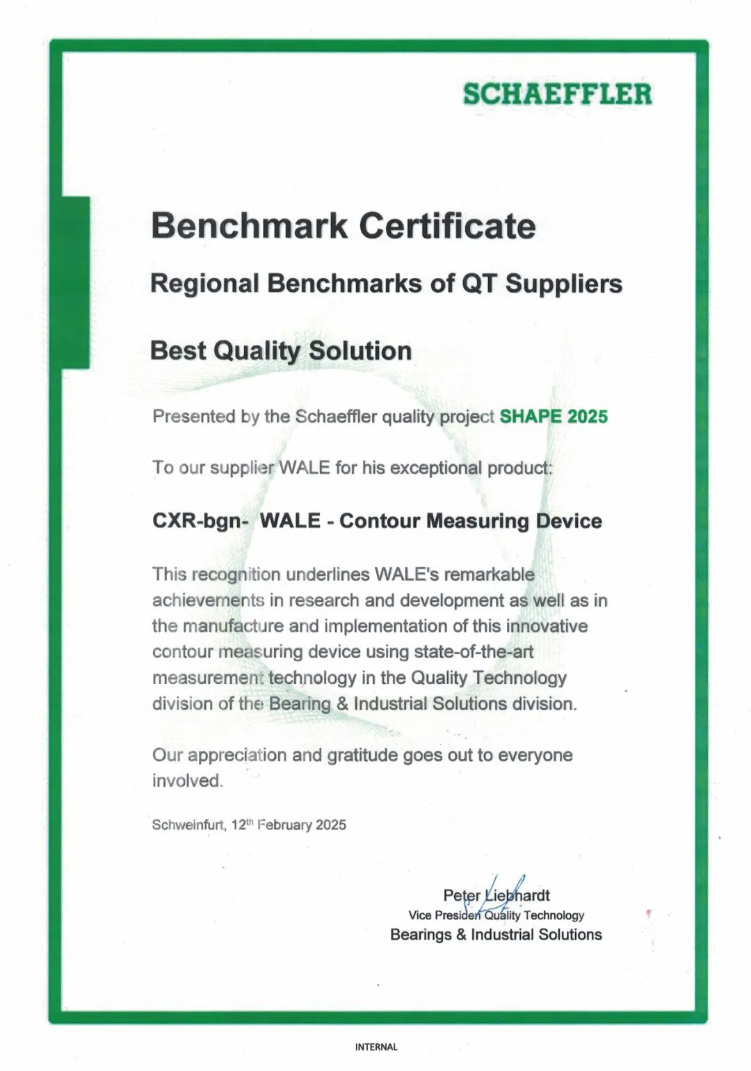 此次認證是自1995年以來,舍弗勒(Schaeffler)在亞洲地區頒發的首張認證牌照,標志著威爾在精密測量領域的核心技術實力、質量管理體系及全球化服務能力獲得國際頂級制造商的高度認可。