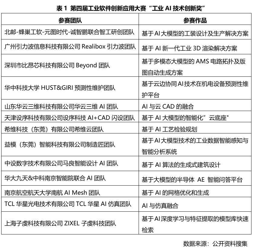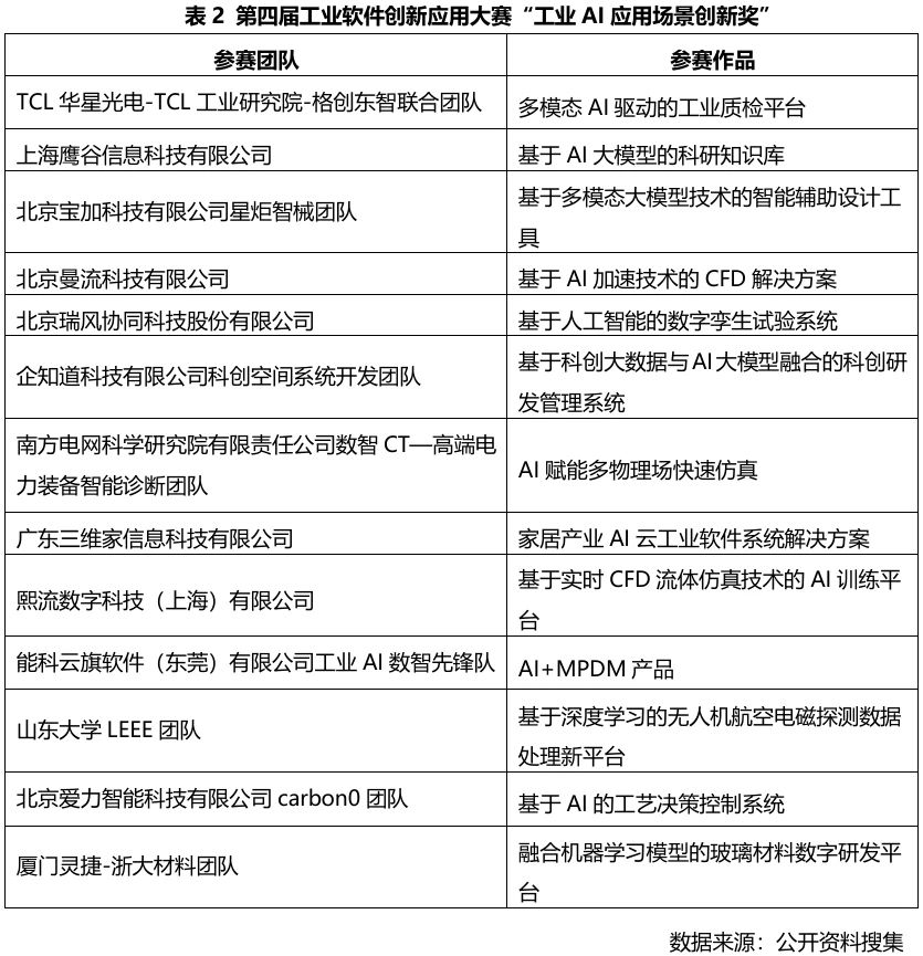 第四屆工業(yè)軟件創(chuàng)新應用大賽以“AI+工業(yè)軟件”為主題,涌現(xiàn)出一大批優(yōu)秀的AI創(chuàng)新與應用項目,有98家隊伍參與比賽,有41支隊伍入圍決賽,13支隊伍獲得技術(shù)創(chuàng)新獎,13支隊伍獲得應用場景創(chuàng)新獎。