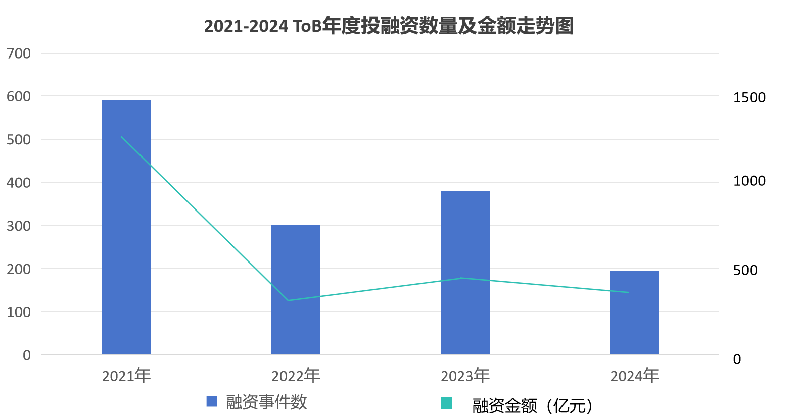 縱觀整個ToB軟件市場,技術(shù)支撐、垂直行業(yè)、工業(yè)軟件這三大類連續(xù)兩年保持為融資核心領(lǐng)域的TOP3。其中,2021年是近四年里的“融資高峰年”,隨后幾年進入調(diào)整期,2022年間無論融資數(shù)量還是金額大幅下滑,這與宏觀經(jīng)濟環(huán)境、資本市場收緊及行業(yè)泡沫清理密切相關(guān);2023年的回升顯示行業(yè)逐步走向理性,優(yōu)質(zhì)項目開始重新受到資本青睞;2024年融資總額未見顯著復蘇,但行業(yè)資金更加聚焦于核心領(lǐng)域和頭部企業(yè)。
