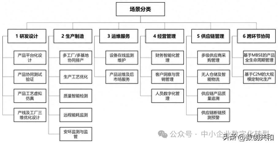 場景是制造業全生命周期的基本單元,也是供需雙方協同推進數字化轉型的紐帶。制造業數字化轉型可以轉化為多個更具操作性的場景轉型,通過打造標準化的數字場景解決方案,實現以場景轉型之“和”形成行業整體轉型之“解”。