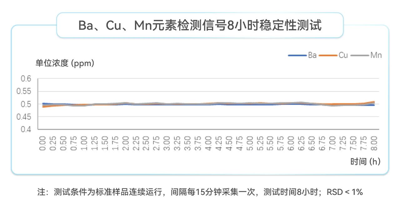 Ba、Cu、Mn元素檢測信號8小時穩定性測試