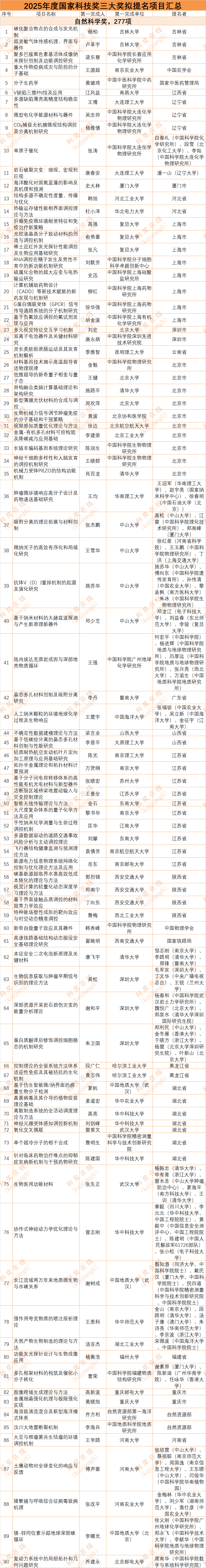 2、2025年國家三大獎,公示名單匯總(自然科學獎、技術發明獎、科技進步獎通用項目)截止到6.30日,115個提名單位公示了1290余項成果申報國家三大獎(含院士專家提名),其中提名科技進步特等獎的成果17項。(注:數據來自高績、科獎在線、各部委、各省市、各社會團隊,數據可能存在誤差,具體以政府公布信息為準)