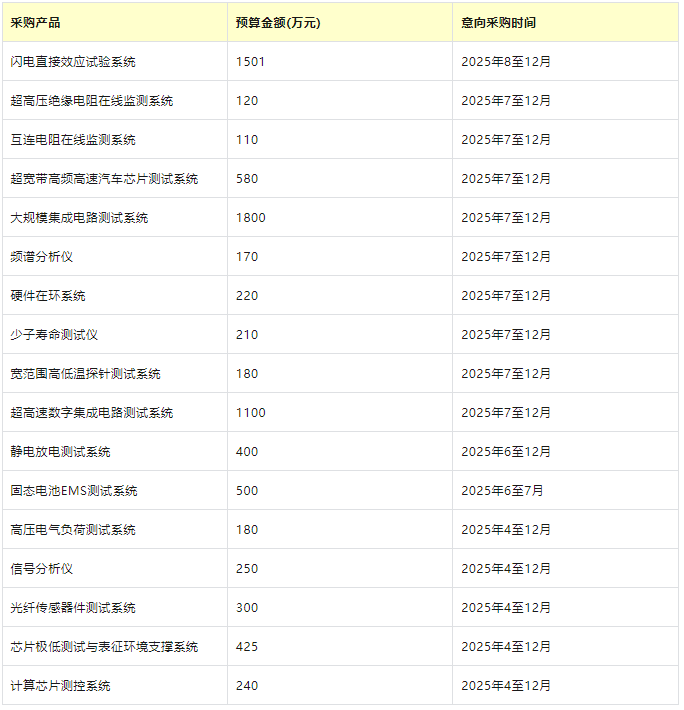 近日,工信部電子第五研究所(中國賽寶實驗室)近期發(fā)布2025年7至12月政府采購意向公告,電子測試測量設備采購預算總額高達8796萬元!這份重量級采購清單,不僅是一份訂單,更是窺探中國電子產(chǎn)業(yè)核心測試需求與前沿技術發(fā)展方向的絕佳窗口。