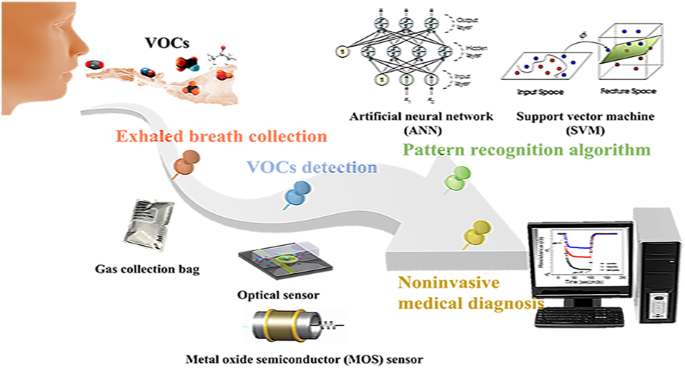機器學習與模式識別技術賦予傳感器解析復雜氣體 “指紋” 的能力。浙江大學鄔建敏團隊基于石墨烯基嗅覺傳感器陣列,通過機器學習分析信號,結合 RF、Lasso、SVM 加權融合模型,提升了呼吸道感染類型檢測的魯棒性與準確性;瑞典林雪平大學與國家法醫學委員會團隊采用 32 MOS 氣體傳感器陣列,結合自適應機器學習算法,實現了法醫鑒定中 VOC 的非侵入、實時分析。