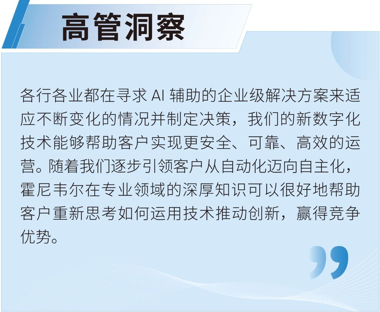 近日,霍尼韋爾宣布推出人工智能(AI)輔助的新數(shù)字化技術(shù),以加快工業(yè)從自動(dòng)化向自主化轉(zhuǎn)型。