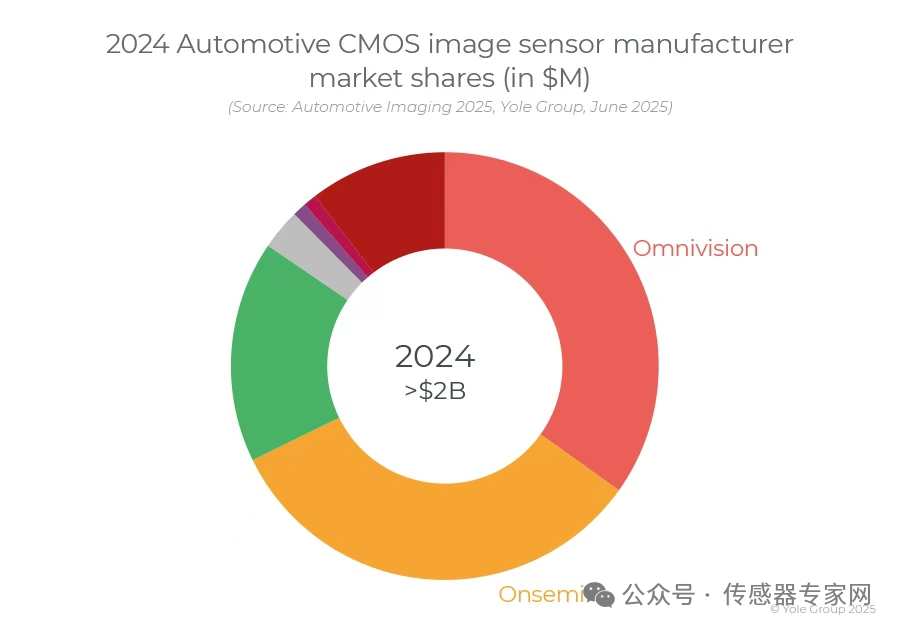 值得一提的是,在汽車(chē)CMOS圖像傳感器領(lǐng)域,豪威集團(tuán)在2024年成功超過(guò)安森美,成為全球第一,這也是安森美多年來(lái)首次從汽車(chē)CIS冠軍寶座跌落。