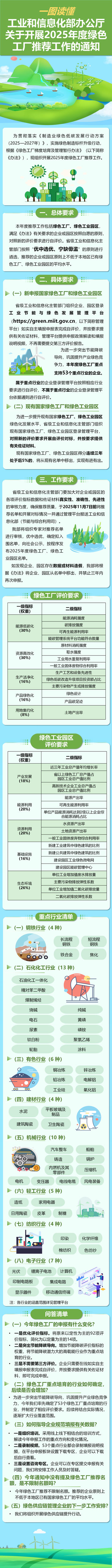 為貫徹落實《制造業(yè)綠色低碳發(fā)展行動方案(2025—2027年)》,實施綠色制造標(biāo)桿升級行動,根據(jù)《綠色工廠梯度培育及管理暫行辦法》(以下簡稱《辦法》),現(xiàn)組織開展2025年度綠色工廠推薦工作。有關(guān)事項通知如下: