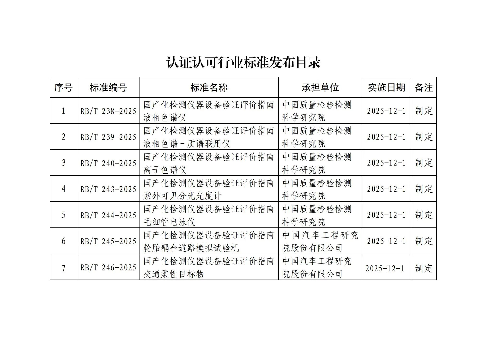 《國產化檢測儀器設備驗證評價指南 液相色譜儀》等7項認證認可行業標準已經國家認監委審核,現予公告。