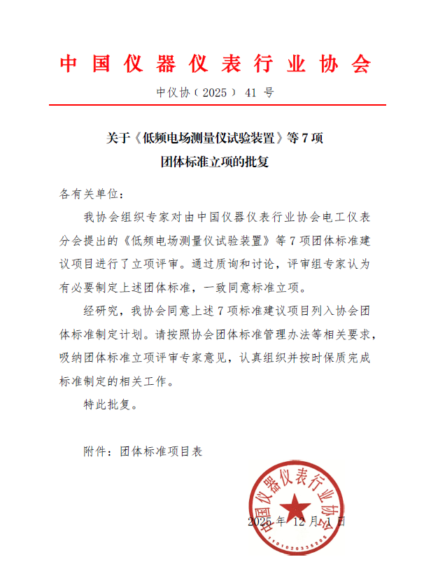 關(guān)于《低頻電場測量儀試驗(yàn)裝置》等7項(xiàng)團(tuán)體標(biāo)準(zhǔn)立項(xiàng)的