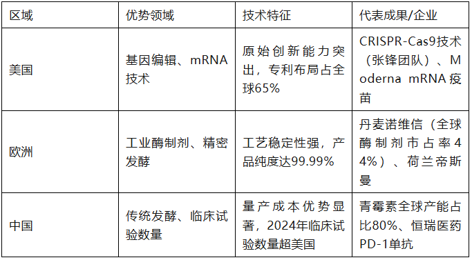 美國依托強(qiáng)大的基礎(chǔ)研究能力,主導(dǎo)合成生物學(xué)底層技術(shù)創(chuàng)新,CRISPR基因編輯專利家族覆蓋72%以上應(yīng)用場景;歐洲憑借百年發(fā)酵工業(yè)積累,在酶制劑定向進(jìn)化、高密度發(fā)酵工藝上構(gòu)筑壁壘,諾維信的蛋白酶比活(催化效率)是中國同類產(chǎn)品的2.3倍。中國雖在發(fā)酵規(guī)模和臨床試驗(yàn)數(shù)量上領(lǐng)先,但缺乏自主知識產(chǎn)權(quán)的核心菌種和高端轉(zhuǎn)化技術(shù)。