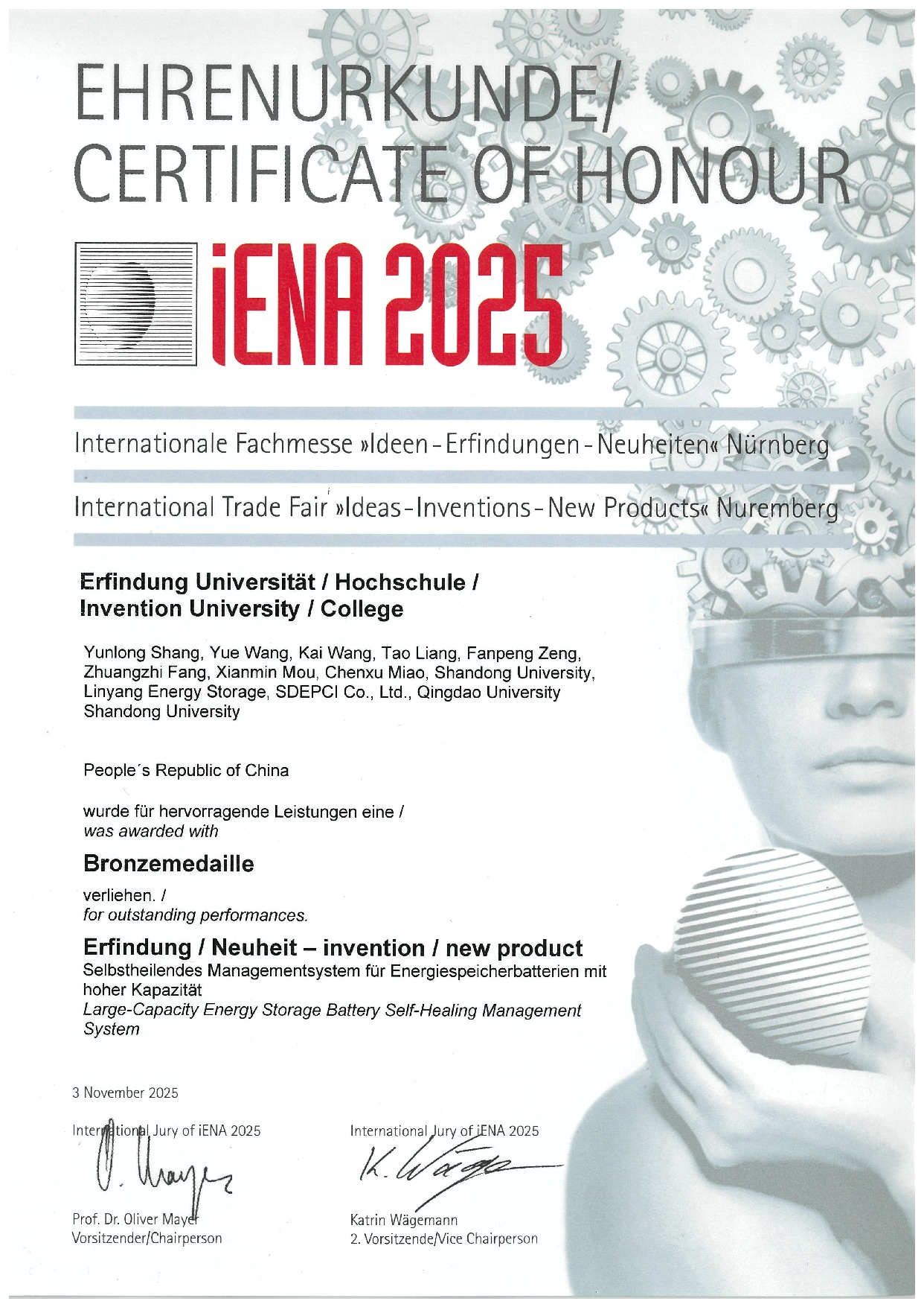 近日,江蘇林洋儲能技術有限公司聯合山東大學研發的“大容量儲能電池自愈管理系統”,在2025德國紐倫堡國際發明展(iENA)中成功斬獲獎項。這一成果,意味著該技術登上了全球發明創新領域的“殿堂級舞臺”。