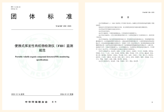 日前,山東魯南瑞虹化工儀器有限公司參與起草的《便攜式揮發(fā)性有機(jī)物檢測儀(FID)監(jiān)測規(guī)范》(T/ACEF 238—2025)于2025年12月16日在全國團(tuán)體標(biāo)準(zhǔn)信息平臺正式發(fā)布,自2026年1月1日起施行。歷經(jīng)三年深耕細(xì)作,這項標(biāo)準(zhǔn)的出臺為我國VOCs泄漏監(jiān)測提供了關(guān)鍵技術(shù)支撐,標(biāo)志著PM2.5與O3協(xié)同控制工作在設(shè)備監(jiān)測領(lǐng)域邁出標(biāo)準(zhǔn)化步伐。