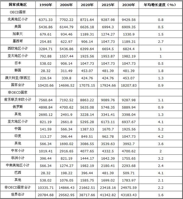 資料來(lái)源:美國(guó)能源署(InternationalEnergyOutlook2008)單位:億立方米